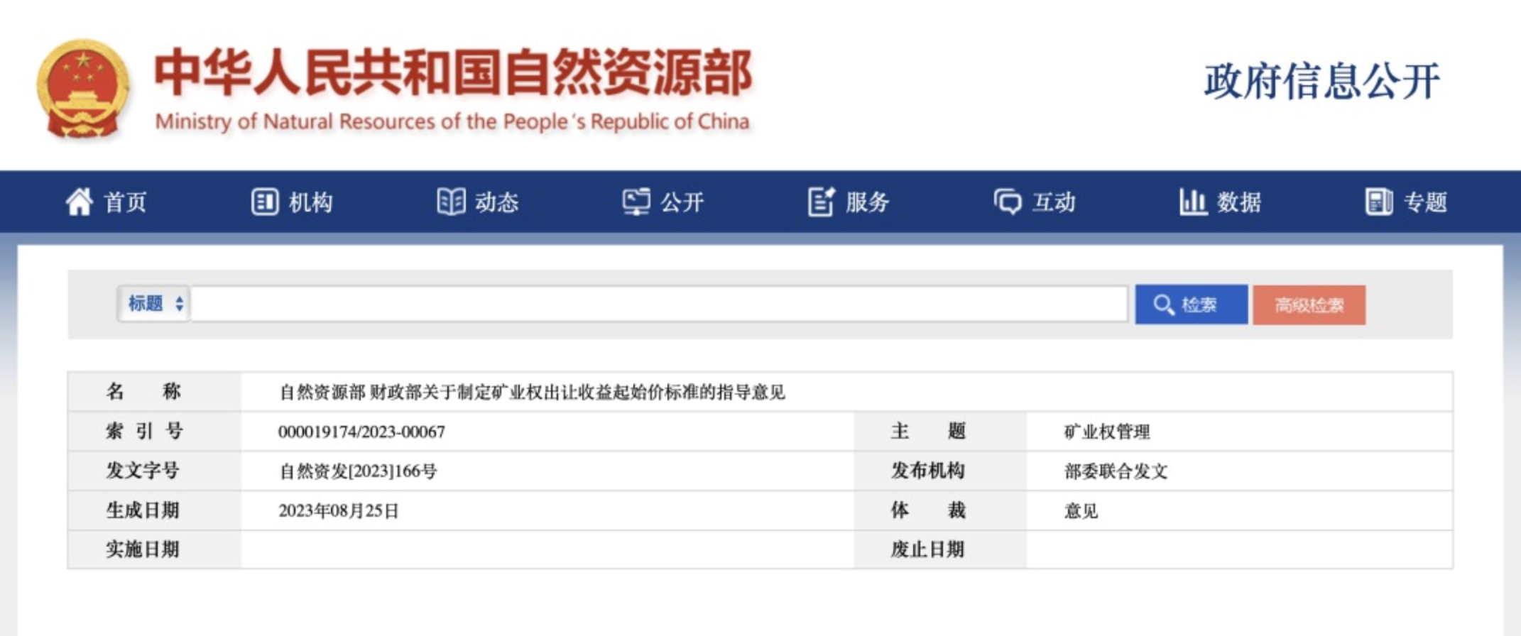 重要文件!礦業權出讓收益起始價標準發布